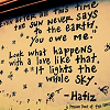 Description: Picture of wall with poem painted on by Hafiz (even after all this time, the sun never says to the earth, "You owe me")